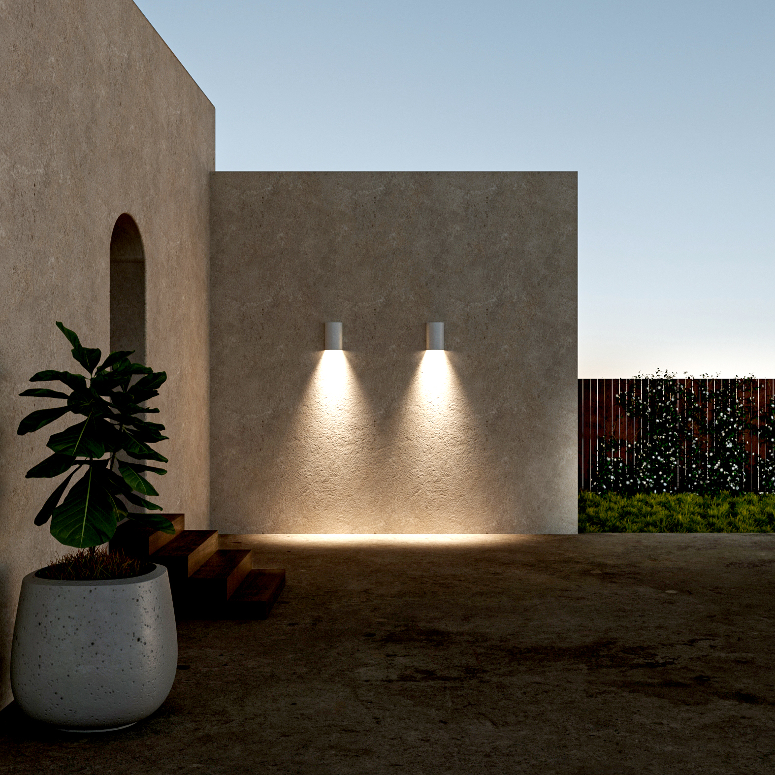 We Ponder Dawn Short, Ceramic Construction, Natural Trim, GU10 Lamp Holder, IP20, Wall Surface Mounted, NO LAMP INCLUDED.