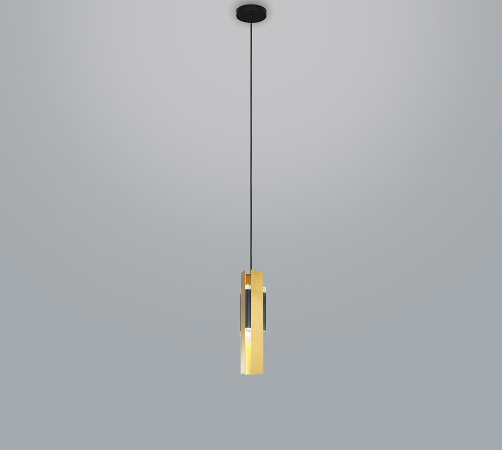 Tooy EXCALIBUR PENDANT 21 Pendant, Metal, Brass and PMMA Construction, Sand black + brushed brass Trim, 10W, 2700°K, IP40, Suspension Mounted, Integral Control Gear, Phase Cut Dimmable.