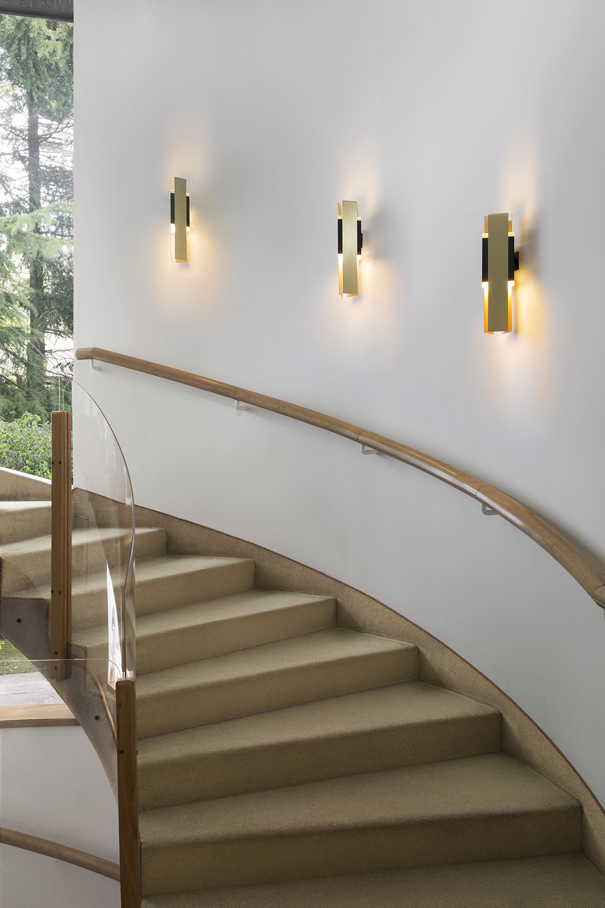 Tooy EXCALIBUR WALL LIGHT 41 Surface Wall Light, Metal, Brass and PMMA Construction, Sand black + brushed brass Trim, 10W, 2700°K, IP40, Wall Surface Mounted, Integral Control Gear, Phase Cut Dimmable.