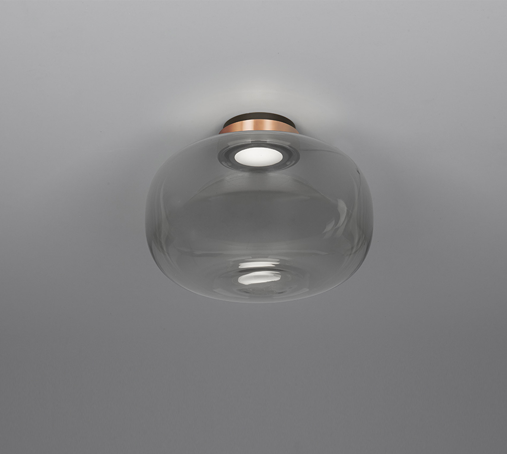 Tooy LEGIER CEILING LIGHT 74 Surface Ceiling, Metal, Glass, Brass, Aluminium Construction, Sand black + smoke glass + Ring in copper Trim, 10W, 2700°K, IP40, Ceiling Surface Mounted, Integral Control Gear, Phase Cut Dimmable.