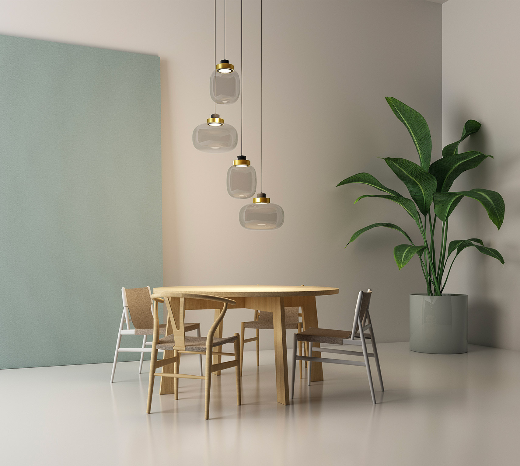 Tooy LEGIER CHANDELIER 14 Chandelier | Pendant, Metal, Glass, Brass, Aluminium Construction, Sand black + smoked glass + Ring in brushed brass Trim, 40W, 2700°K, IP40, Suspension Mounted, Integral Control Gear, Phase Cut Dimmable.