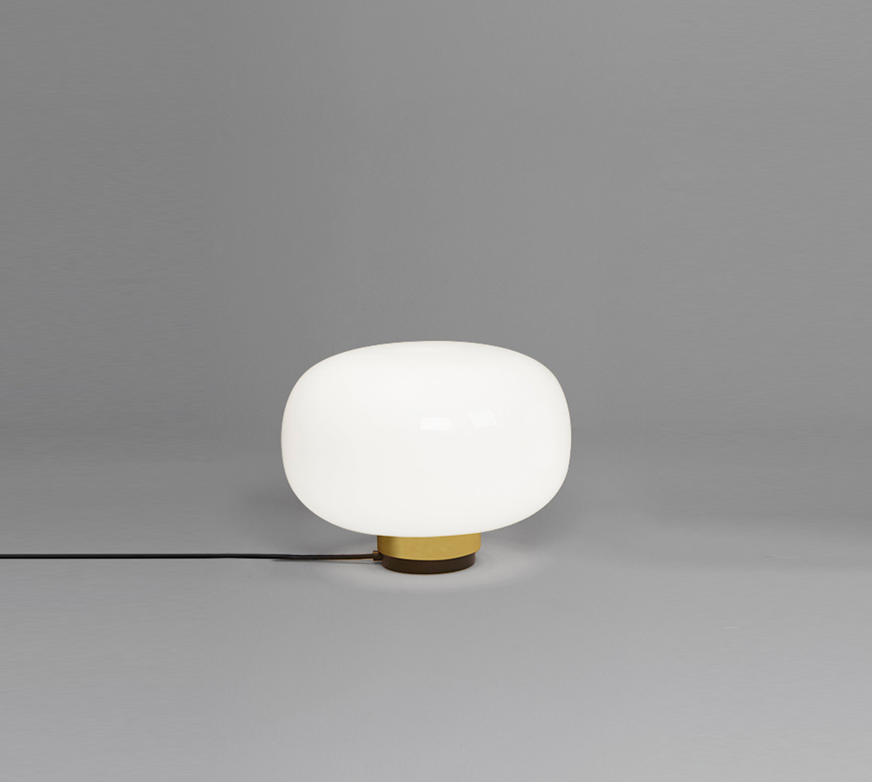 Tooy LEGIER TABLE LAMP 34 Table Lamp, Metal, Glass, Brass, Aluminium Construction, White opal glass + Ring in brushed brass Trim, 8W, 2700°K, IP40, Table Mounted, Integral Control Gear, Phase Cut Dimmable.