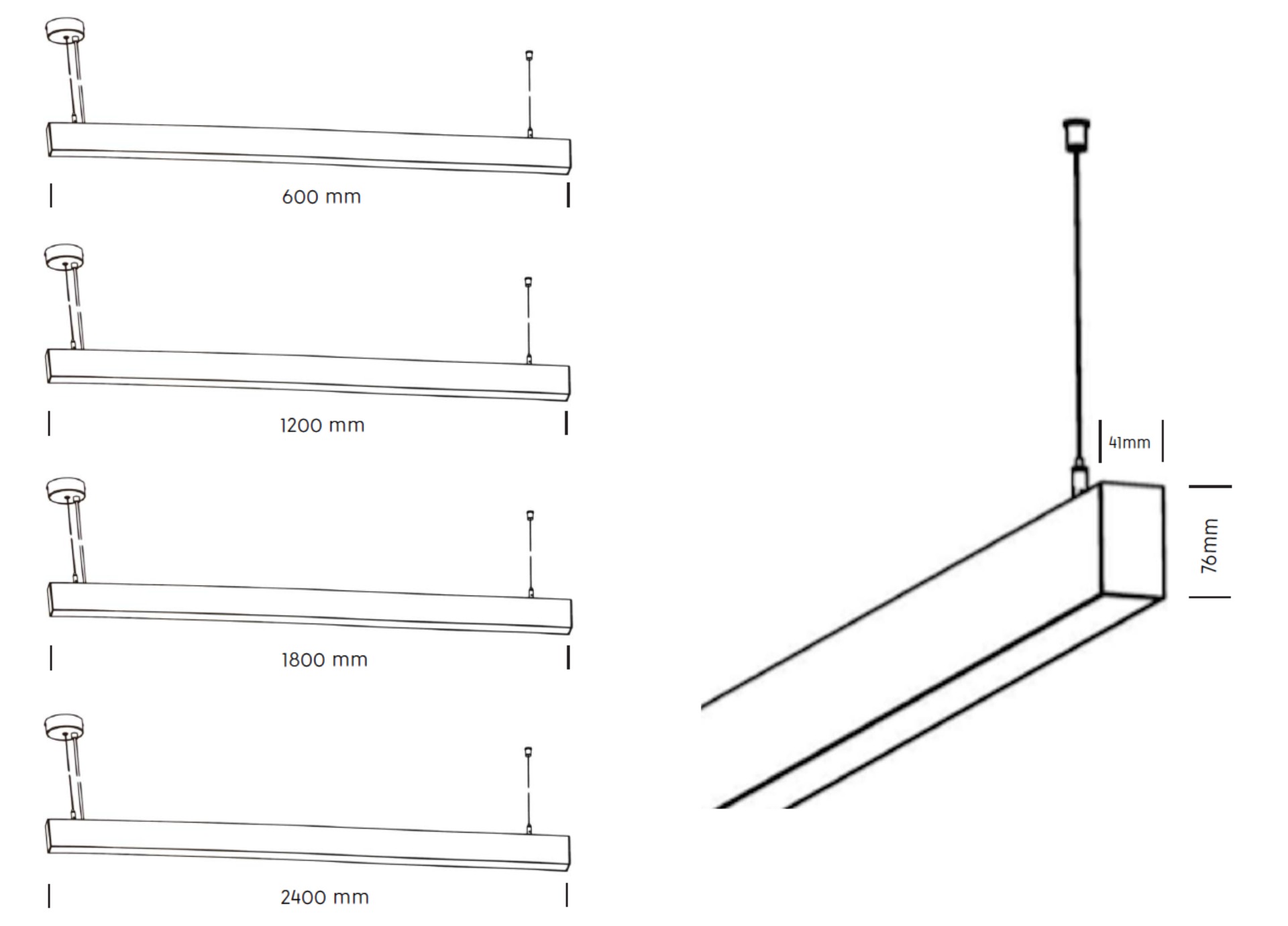 Faze Line Opal 1200, Aluminium Construction, White Trim, 30W, 90° Beam Angle 3000°K, CRI >90 IP 40, Surface | Pendant Mounted, Integral Control Gear, Phase Cut Dimmable.