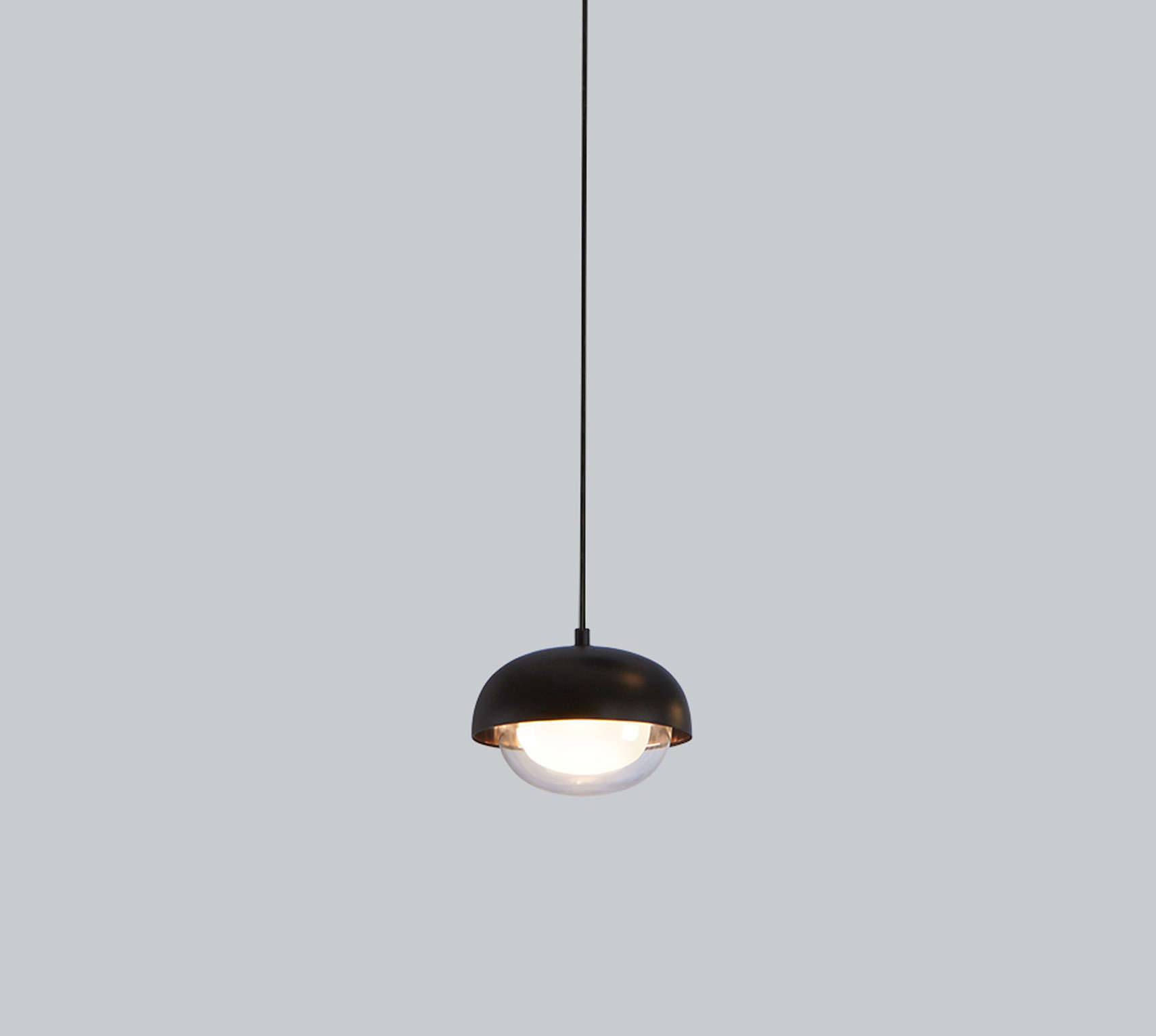 Tooy MUSE PENDANT 21 Pendant, Metal, Brass, Glass Construction, Sand black + brushed brass Trim, G9 Lamp Holder, IP40, Suspension Mounted, NO LAMP INCLUDED.