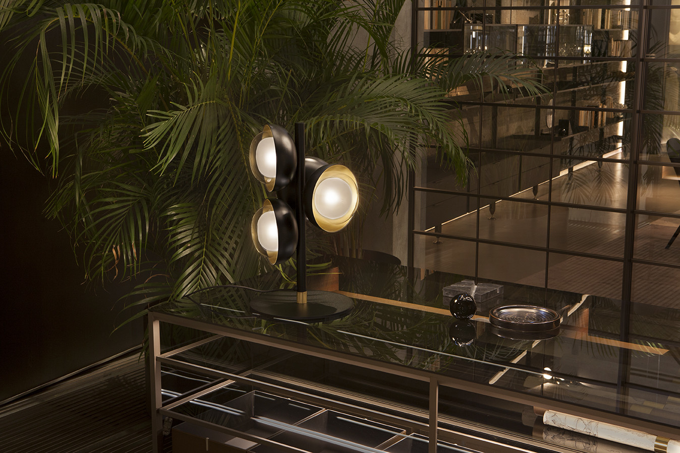 Tooy MUSE TABLE LAMP 35 Table Lamp, Metal, Brass, Glass Construction, Sand black + brushed brass Trim, G9 Lamp Holder, IP40, Table Mounted, NO LAMP INCLUDED.