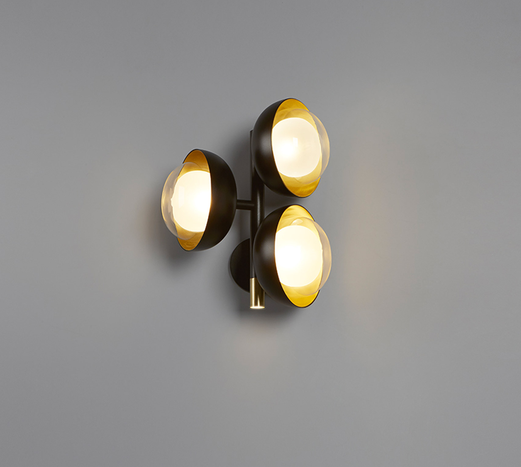 Tooy MUSE WALL LIGHT 44 Surface Wall Light, Metal, Brass, Glass Construction, Sand black + brushed brass Trim, G9 Lamp Holder, IP40, Wall Surface Mounted, NO LAMP INCLUDED.