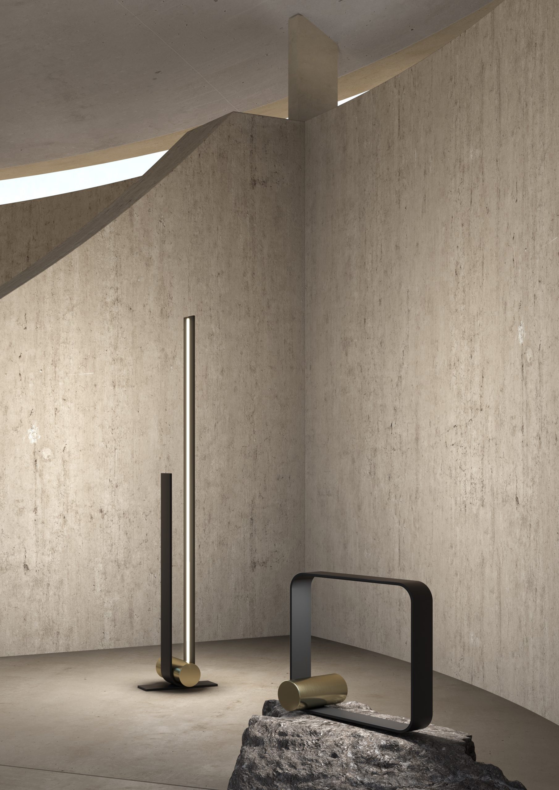 Tooy NASTRO FLOOR LAMP 62 Floor Lamp, Aluminium, Brass, Wood, Metal Construction, All colour combo’s (no concrete) Trim, 50W, 2700°K, IP40, Floor Mounted, Integral Control Gear, Phase Cut Dimmable.