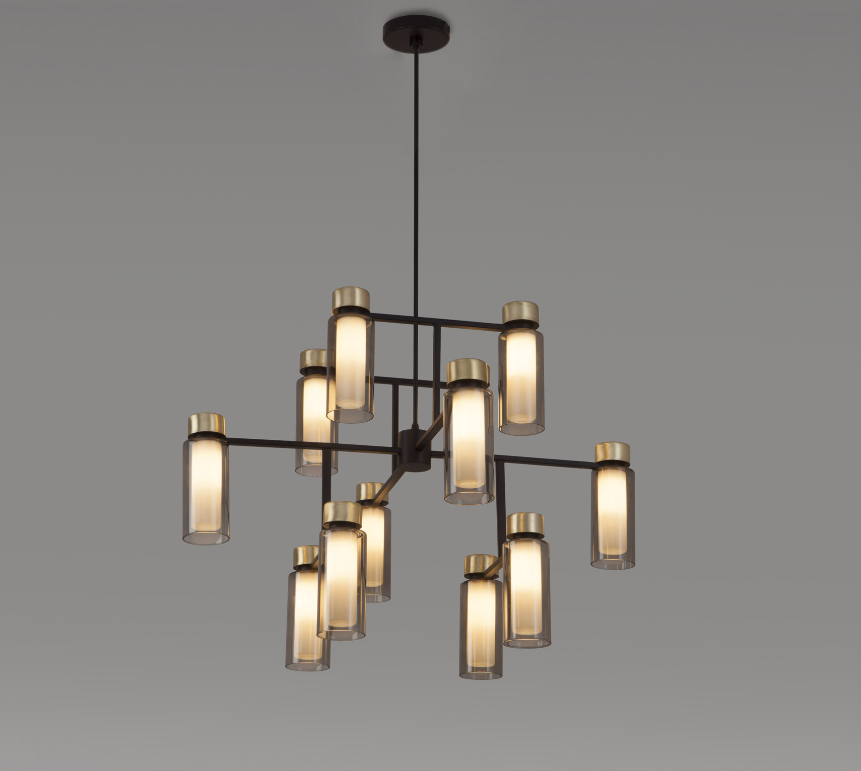 Tooy OSMAN CHANDELIER 12 Chandelier | Pendant, Metal, Brass, Glass Construction, Matte black + brushed brass + clear glass Trim, E14 Lamp Holder, IP20, Suspension Mounted, NO LAMP INCLUDED.