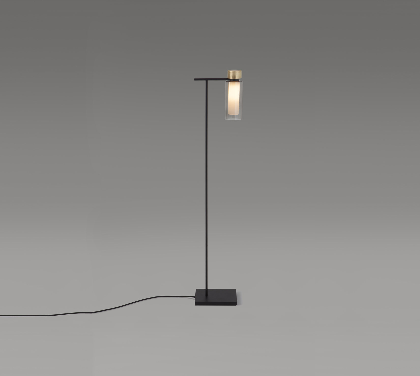 Tooy OSMAN FLOOR LAMP 61 Floor Lamp, Metal, Brass, Glass Construction, Matte black + brushed brass + clear glass Trim, E14 Lamp Holder, IP20, Floor Mounted, NO LAMP INCLUDED.