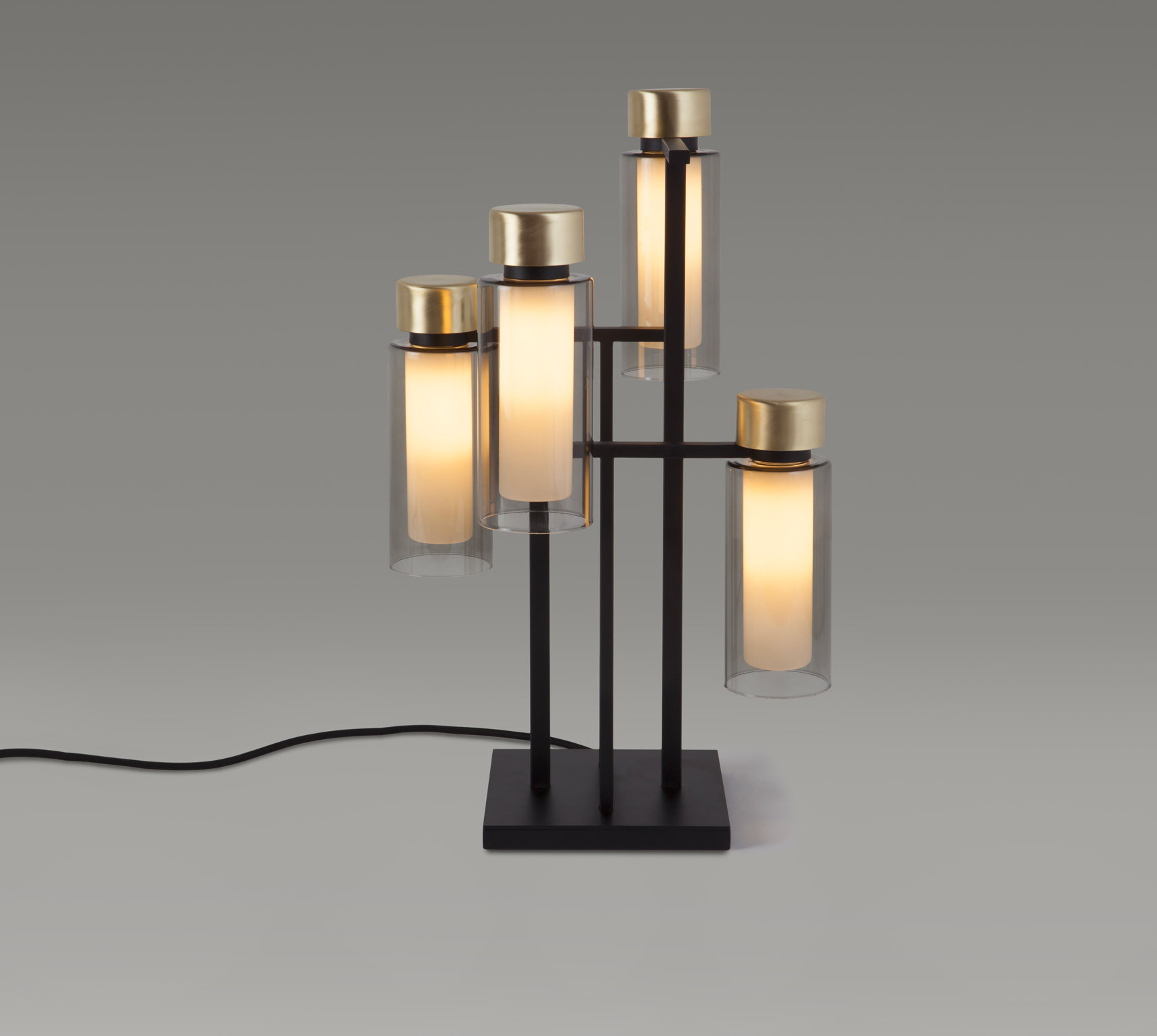 Tooy OSMAN TABLE LAMP 34 Table Lamp, Metal, Brass, Glass Construction, Matte black + brushed brass + clear glass Trim, E14 Lamp Holder, IP20, Table Mounted, NO LAMP INCLUDED.