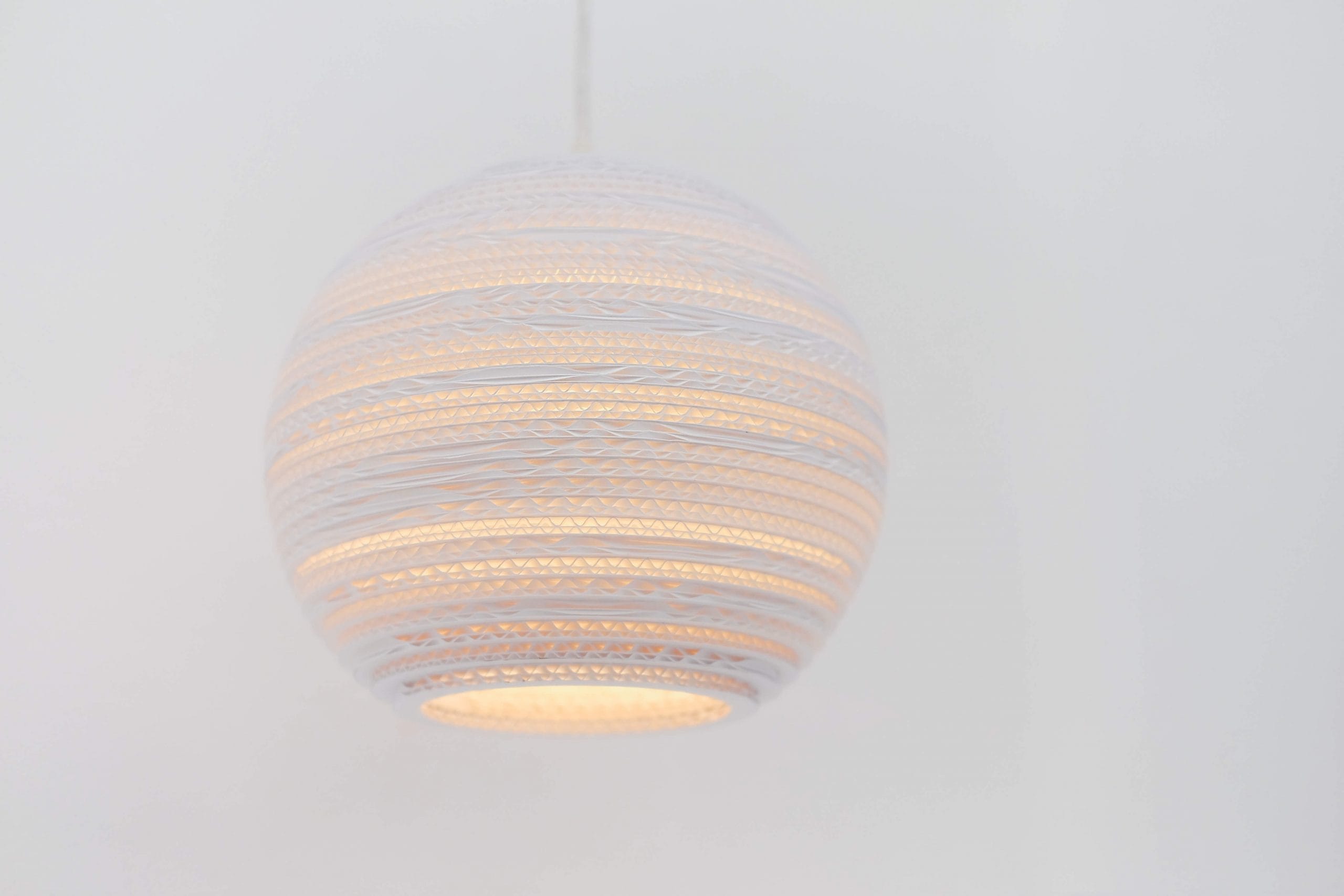 Graypants Scraplights Moon 18 Pendant, Recycled Cardboard Construction, Natural (Brown) Trim, E27 Lamp Holder, IP20, Suspension Mounted, NO LAMP INCLUDED.