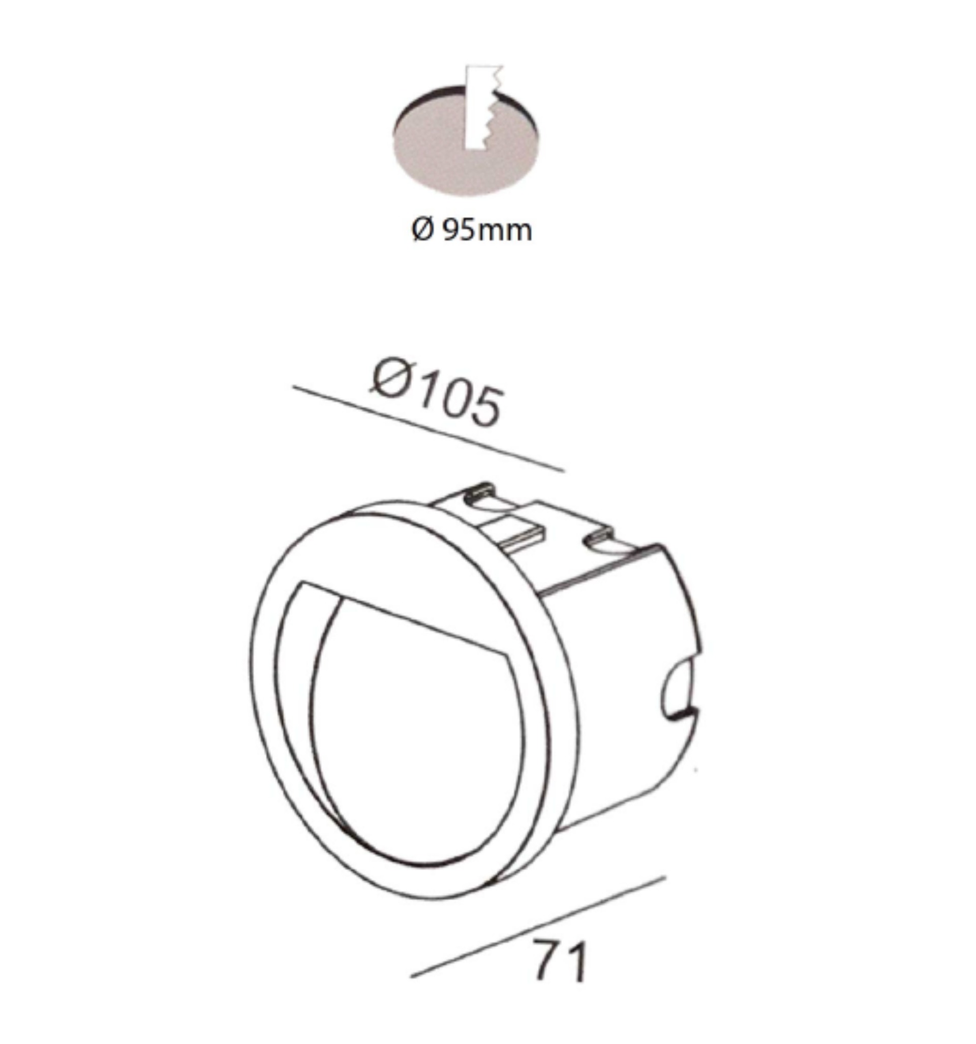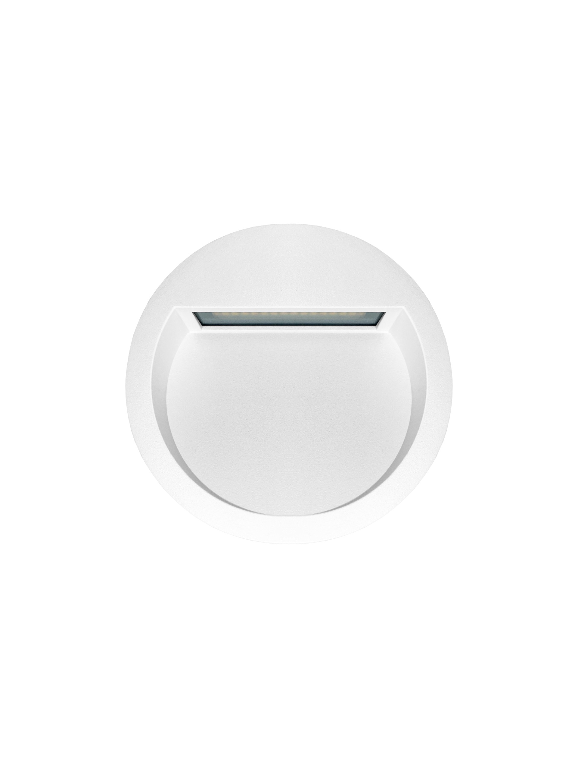 Faze Step Round, Aluminium Construction, White Trim, 3W, 90° Beam Angle 3000°K, CRI >80 IP 54, Wall Recessed Mounted, Integral Control Gear, Non Dimmable.