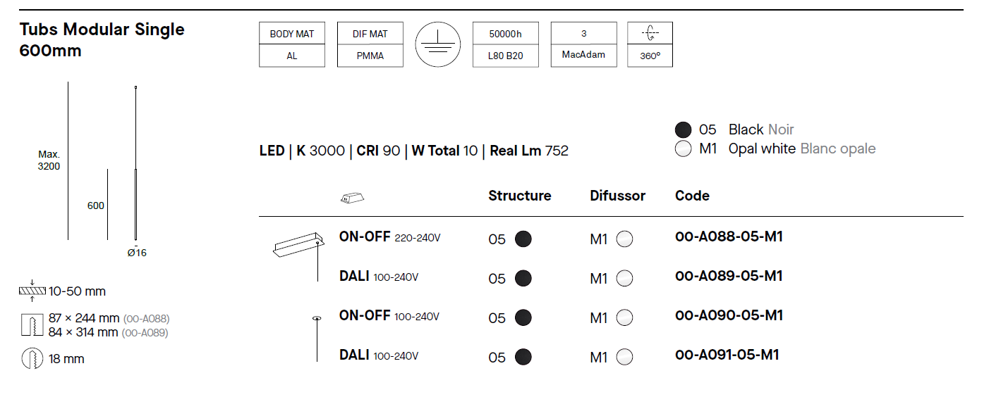 LEDSC4 Tubs Modular Single 600mm Pendant