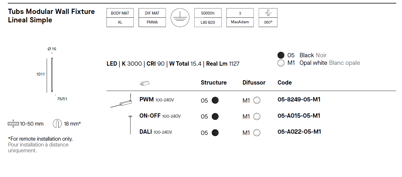 LEDSC4 Tubs Modular Wall Fixture Lineal Simple